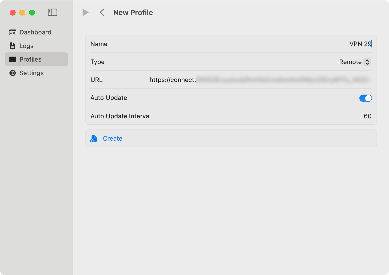 Перейдите в Profiles, New profile и укажите следующие параметры.